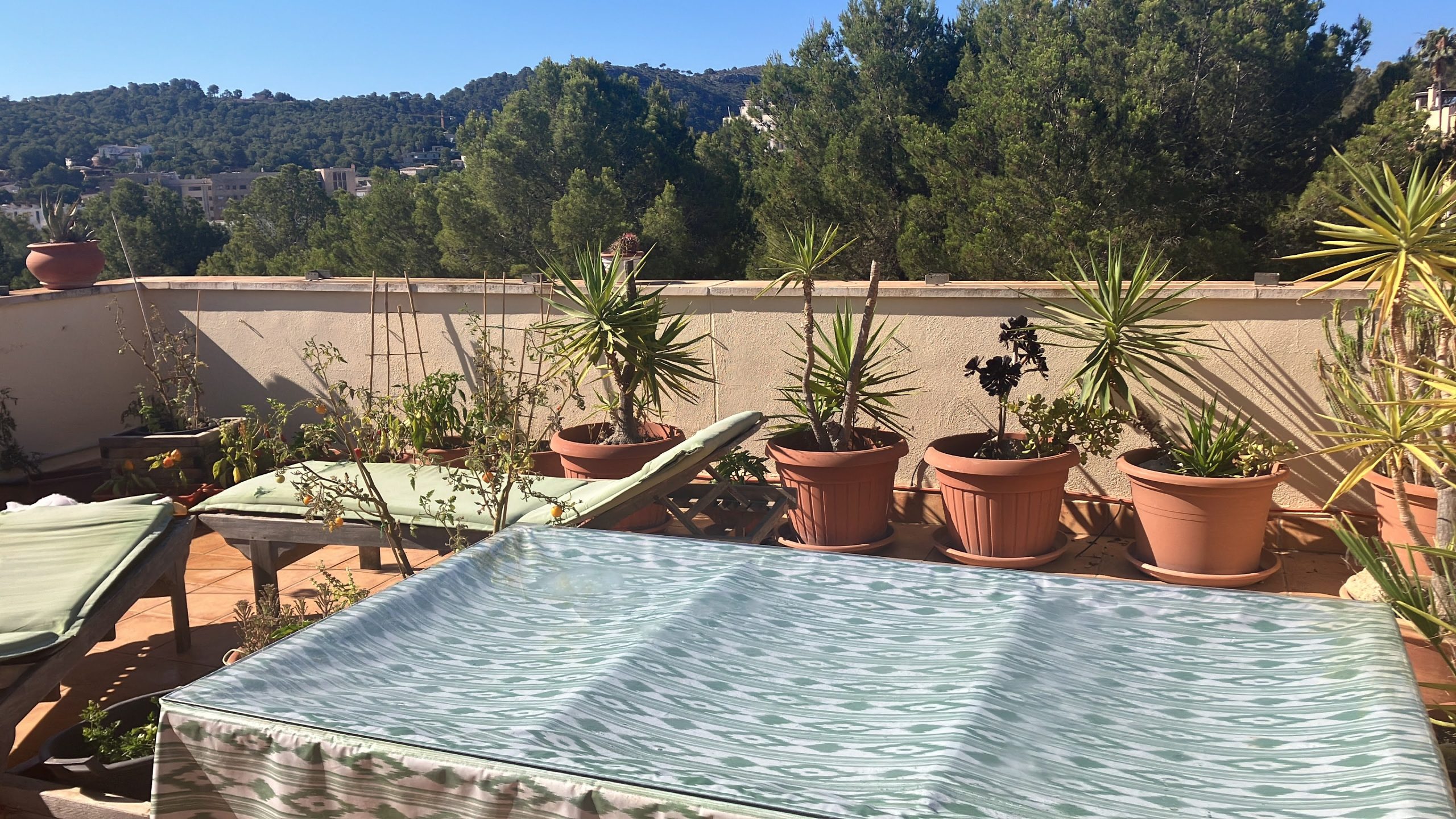 Go up the steps and across the terrace past casa 7.